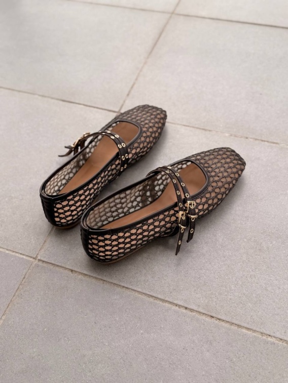 Podwójna siateczka — zewnętrzna strukturalna i wewnętrzna, delikatna i oddychająca — sprawia, że te baleriny są nie tylko lekkie, ale też stworzone, by towarzyszyć Ci przez wiele sezonów.