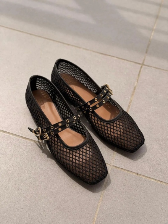 Podwójna siateczka — zewnętrzna strukturalna i wewnętrzna, delikatna i oddychająca — sprawia, że te baleriny są nie tylko lekkie, ale też stworzone, by towarzyszyć Ci przez wiele sezonów.