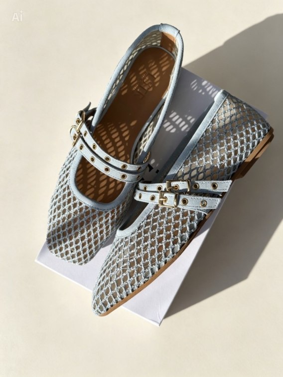 Podwójna siateczka — zewnętrzna strukturalna i wewnętrzna, delikatna i oddychająca — sprawia, że te baleriny są nie tylko lekkie, ale też stworzone, by towarzyszyć Ci przez wiele sezonów.