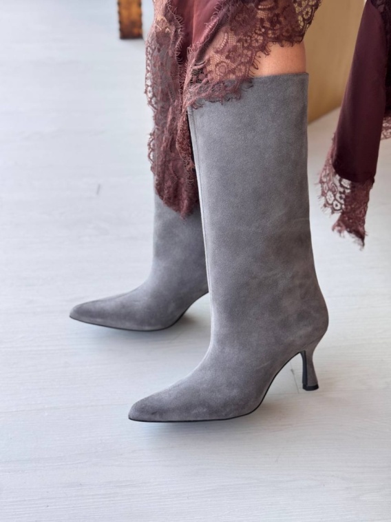 Cholewka: Skóra naturalna, zamsz Podeszwa: Wysokogatunkowe tworzywo Wkładka: Skóra naturalna Wnętrze: Skora naturalna Kolor: czarny, brąz, cappuccino, oliwka Obcas : 6 cm